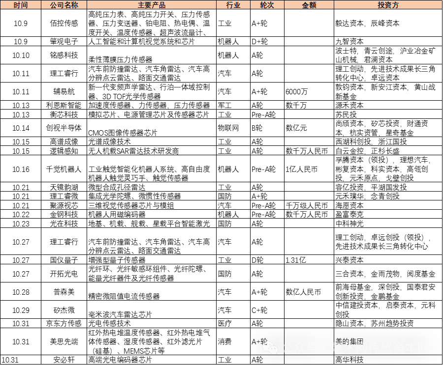 2025年9月份傳感器行業(yè)的融資情況如下表統(tǒng)計(jì)。