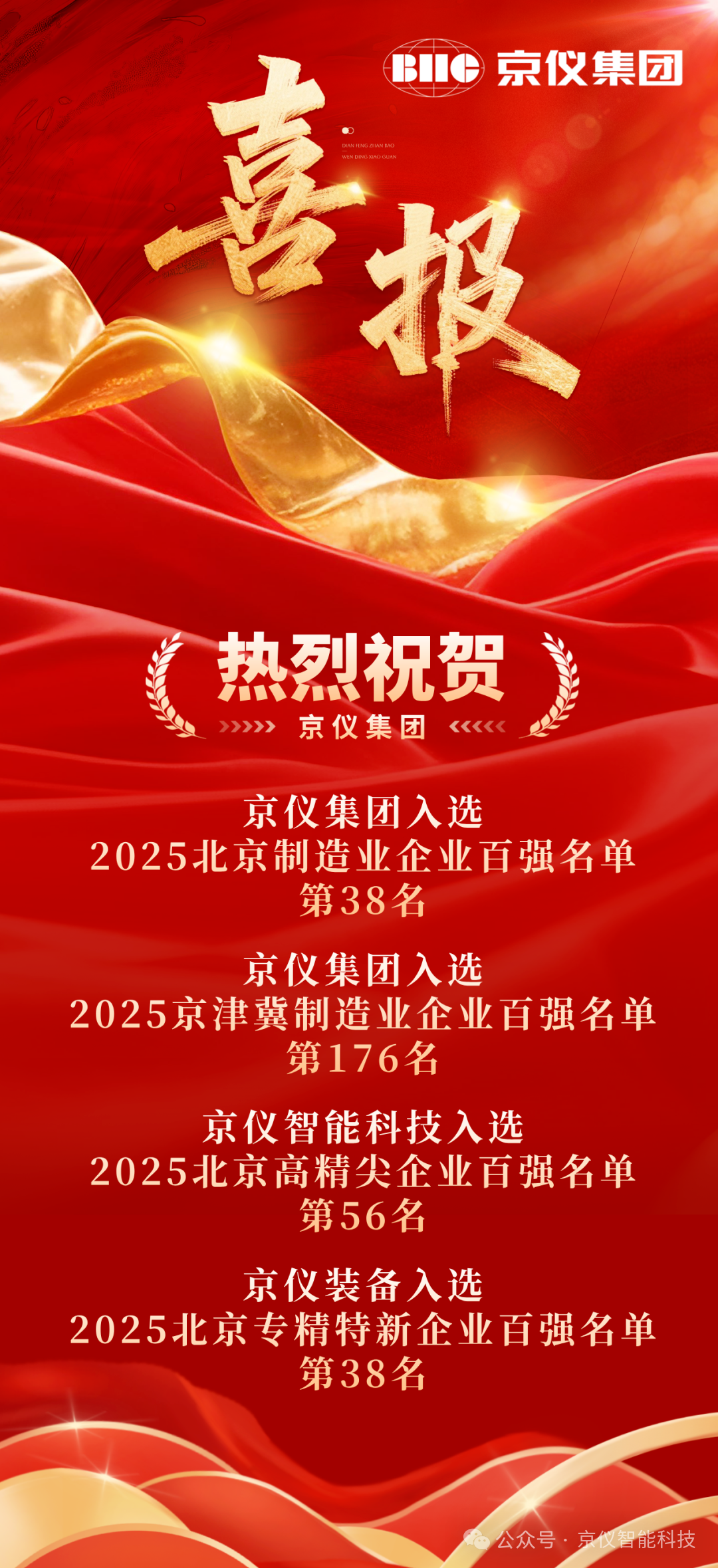 近日,2025年北京高精尖企業百強名單正式發布,京儀智能科技憑借其在高端科學儀器領域的卓越創新能力和產業貢獻,成功入選并位列第56名。