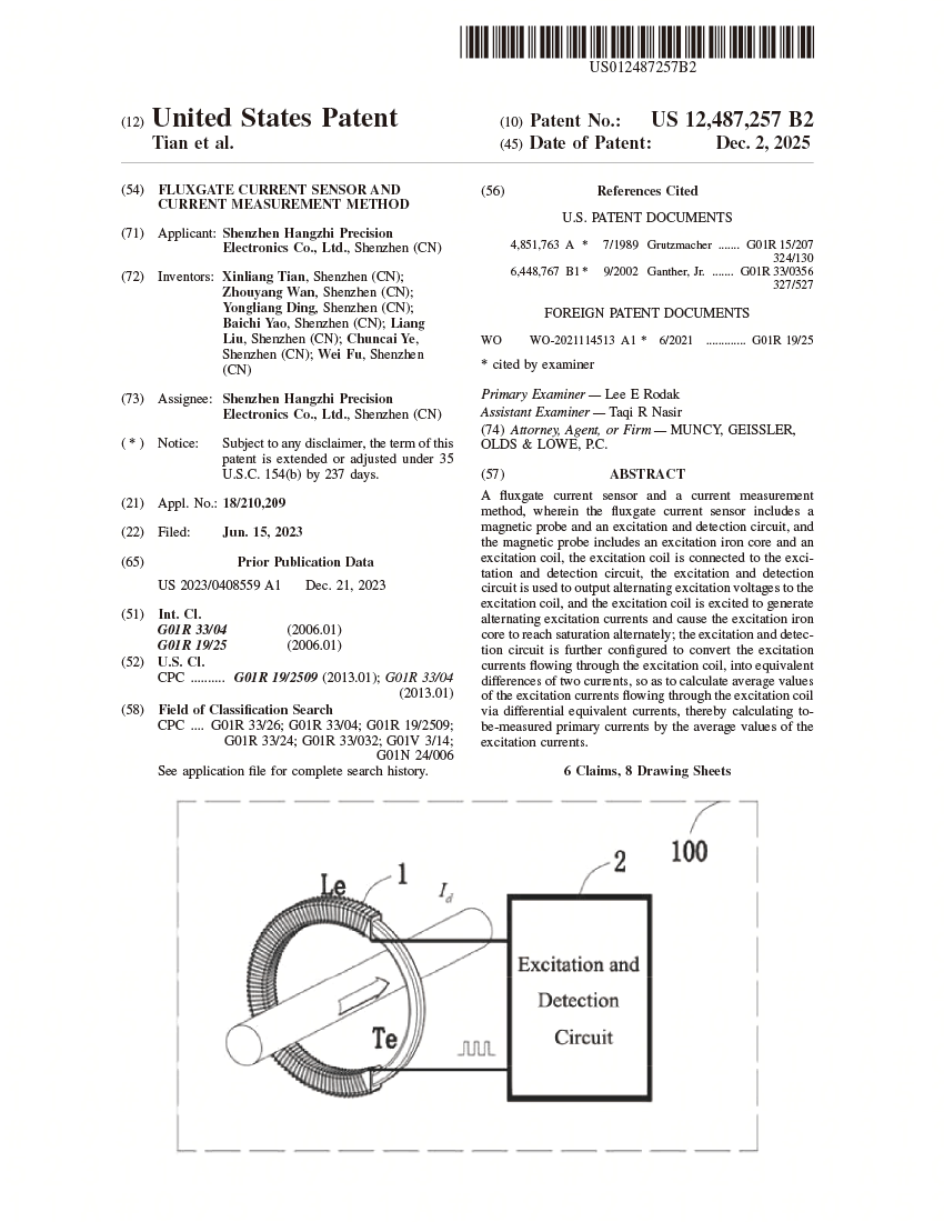 美國發(fā)明專利的授權(quán)需通過新穎性、創(chuàng)造性和實(shí)用性的嚴(yán)格審查。本專利的獲得,意味著航智的磁通門電流測量方案在技術(shù)路徑和實(shí)現(xiàn)方式上具備明確創(chuàng)新性與實(shí)用性。