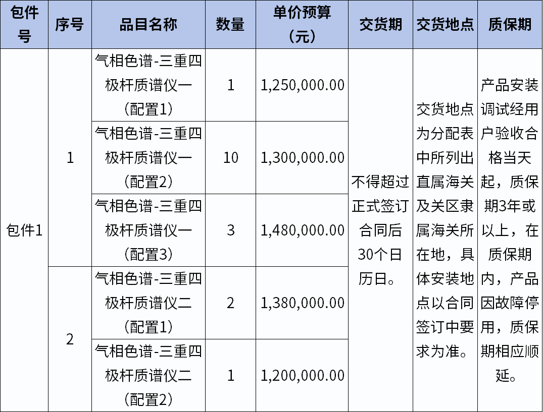 2265萬元,海關(guān)總署17臺(tái)套氣相色譜-三重四極桿