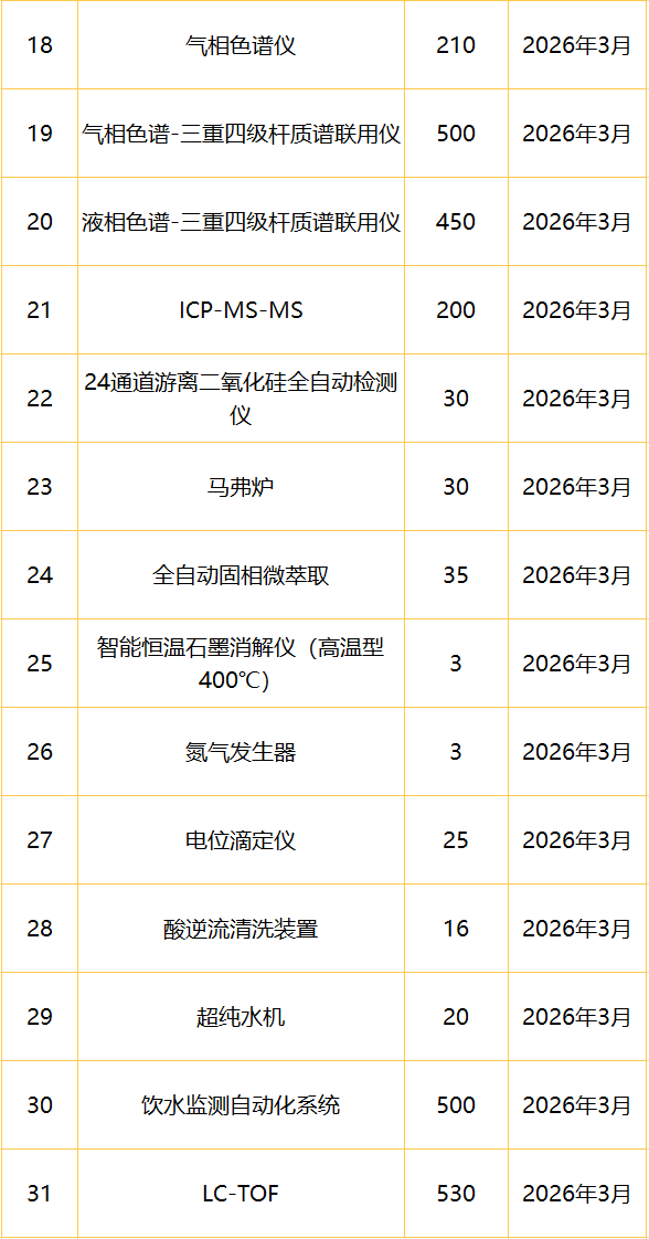 “十五五“儀器設備項目2026年2月至12月政府采購意向