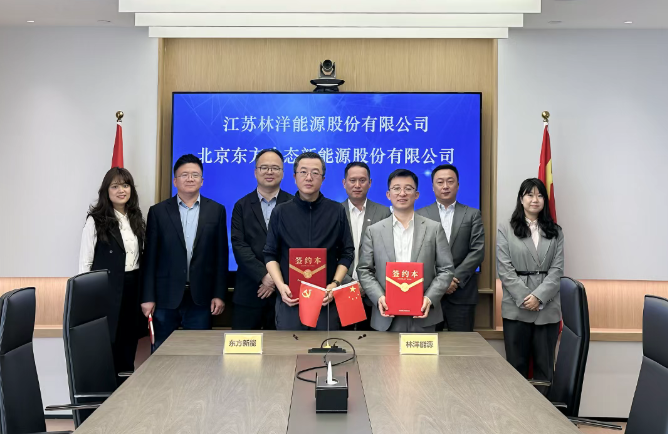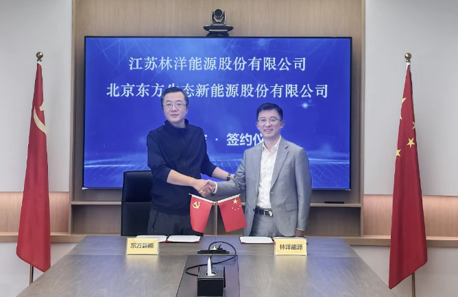 416日,江蘇林洋能源股份有限公司(以下簡稱“林洋能源”)與北京東方生態新能源股份有限公司(以下簡稱“東方新能”)在北京正式簽署戰略合作框架協議。東方新能副總經理兼董事會秘書于旸,林洋能源副總裁兼董事會秘書崔東旭等共同出席簽約儀式。
