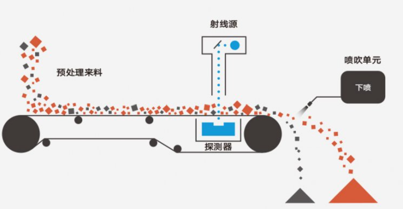 霍里思特的核心產品是基于X射線透視成像和AI識別算法的智能分選機。設備通過X射線探測器獲取礦石內部結構特征,結合AI算法識別廢石與有用礦石,最后用氣排槍實現精準分離。整個過程無需用水,可大幅減少后續磨礦、浮選環節的無用功和藥劑消耗。