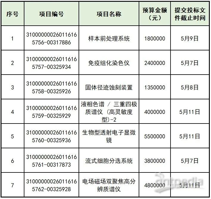 2365萬元!上海市疾病預防控制中心計劃采購多套儀