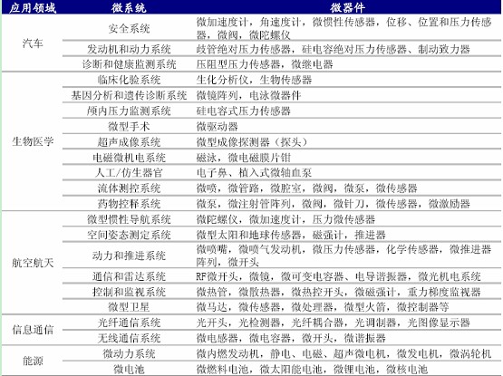 圖1 MEMS主要應(yīng)用領(lǐng)域